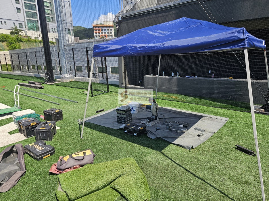 인조잔디 공사가 한창이었습니다.