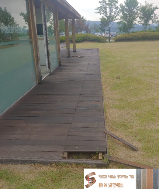 해당 현장은 기존에 설치된 방부목 데크가