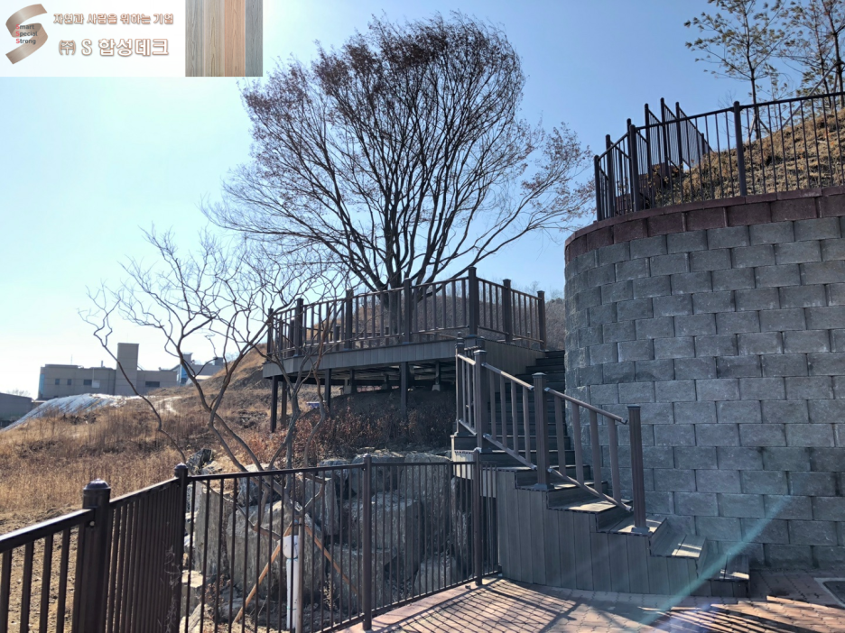 이렇게 멋지게 합성데크와 울타리를 사용하여 지형을 잘 살려