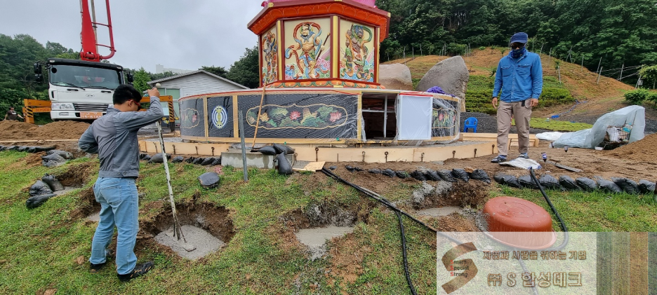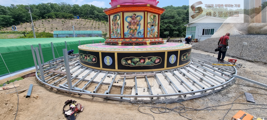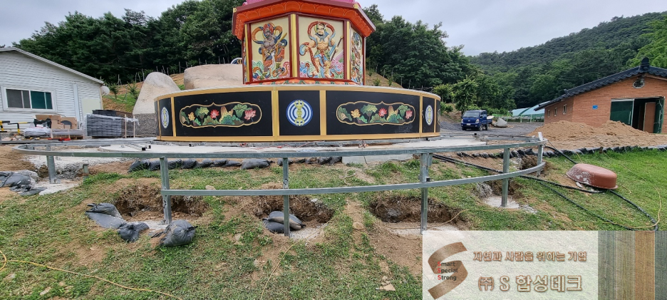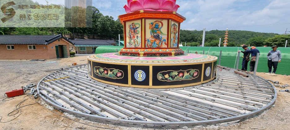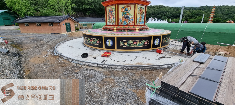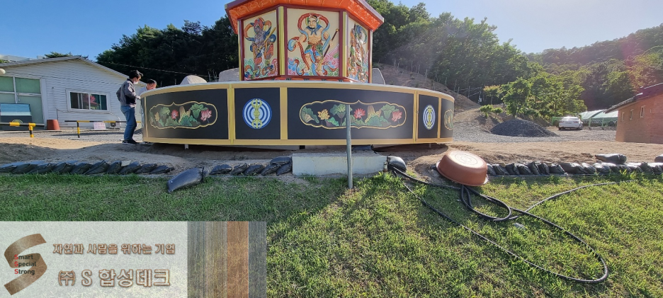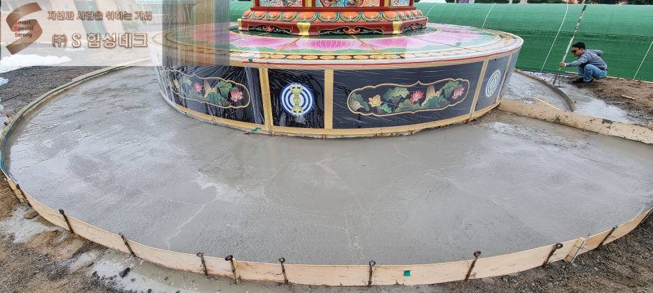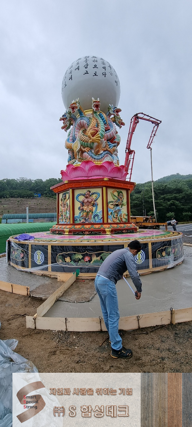 일반적인 직각 면적의 시공이 아닌 불교 기도 조형물에 둥근 원형 모양으로